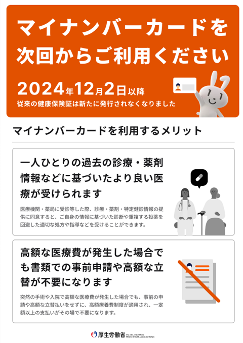・マイナンバーカードを健康保険証(マイナ保険証)として利用することを促進する等、医療DXを通じて質の高い医療を提供できるよう取り組んでいます